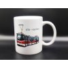 The ceramic mug Miluju Prahu with a picture of the Prague T1 tram by painter Šárka F. Škorpíková. The mug has a capacity of 400 ml.