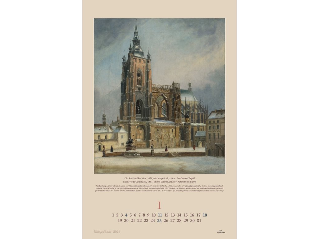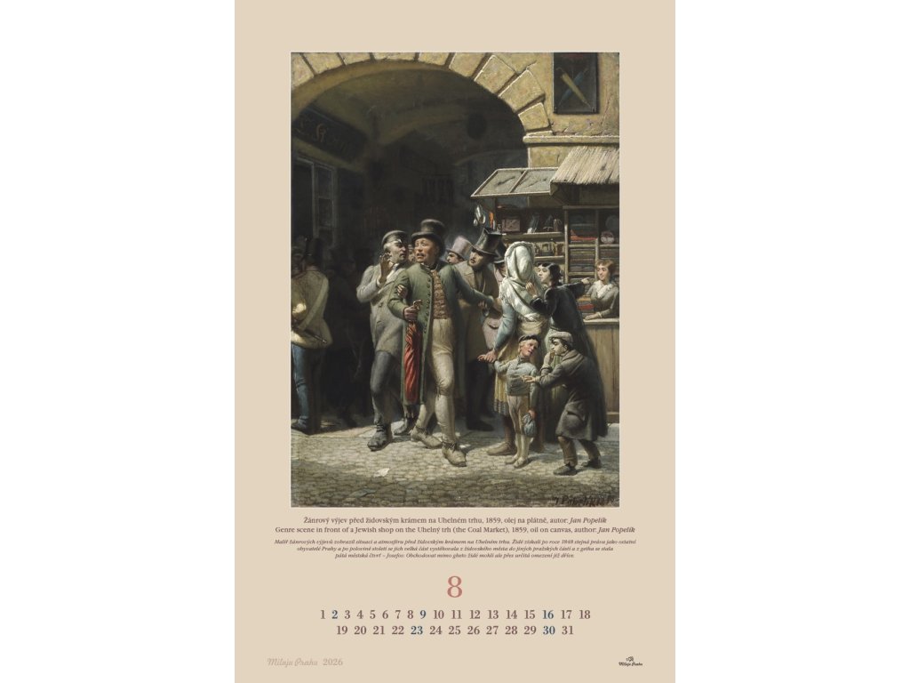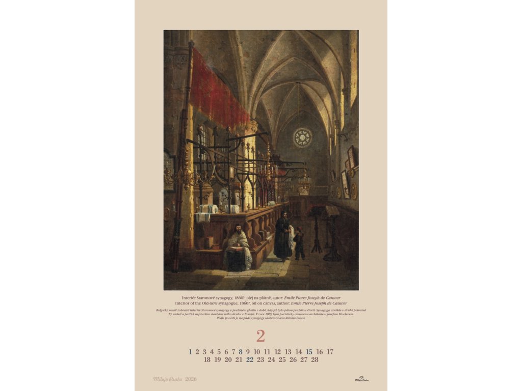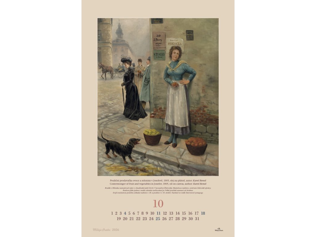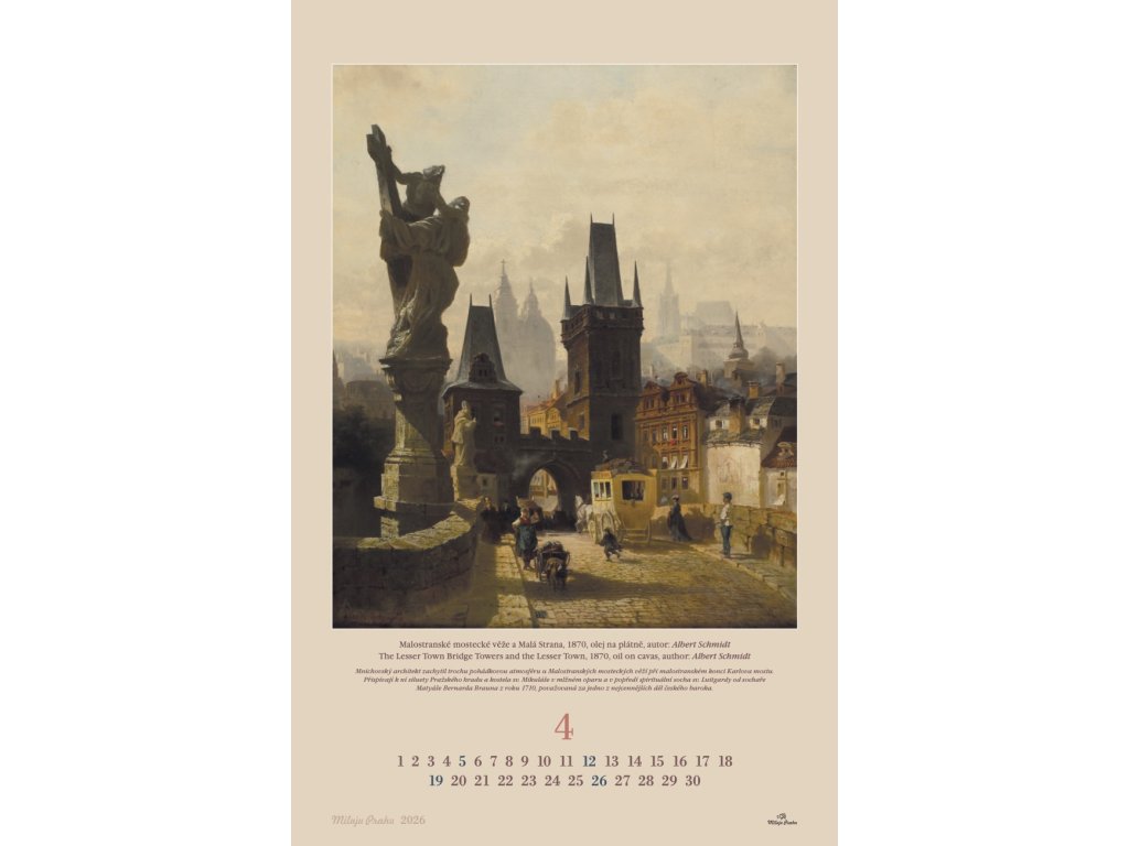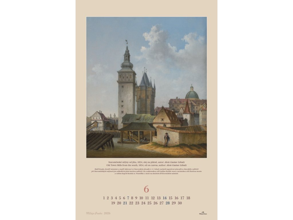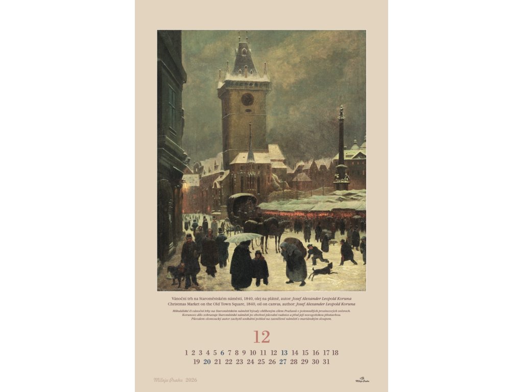 Nástěnný kalendář pro rok 2026 ve zvětšeném formátu A3 (297x460 mm) s výběrem 13 pražských vedut pocházejících z první poloviny 19. století. Kalendář je vytištěn ofsetovou technologií na vysoce kvalitním 250g papíře. Jednotlivé obrazy si můžete i vystřihnout a zapaspartovat.