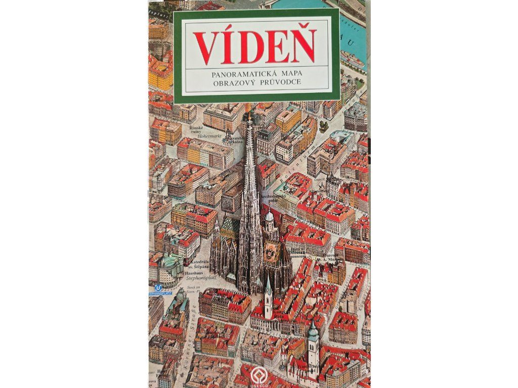Panoramatická mapa a obrazový průvodce Vídní o rozměru 70 x 46 cm (složená na 23 x 13 cm).